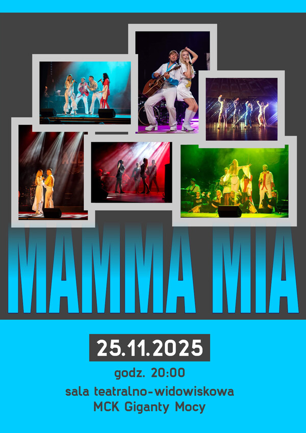 Miejskie Centrum Kultury w Bełchatowie zaprasza na spektakl muzyczny pt. „Mamma Mia”, który odbędzie się 25 listopada br. o godzinie 20:00 w sali teatralno-widowiskowej MCK Giganty Mocy