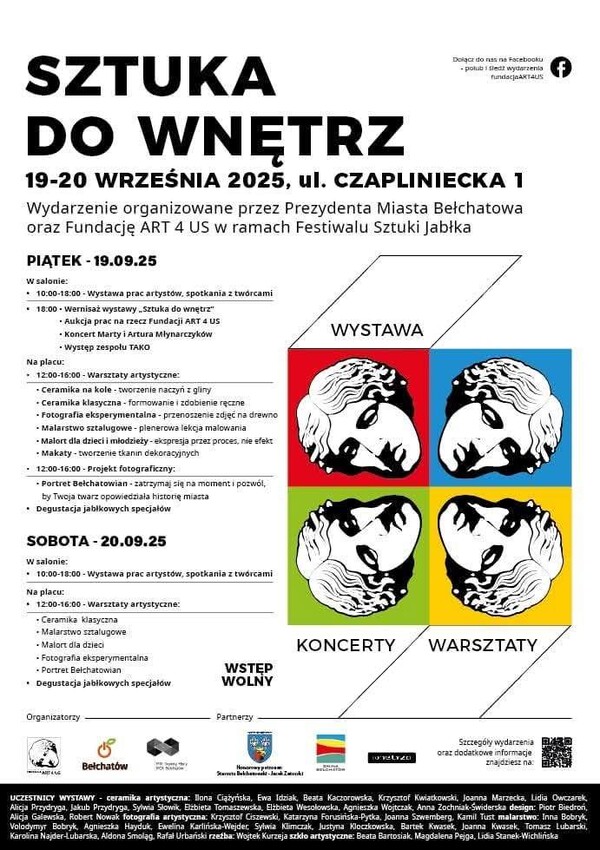 Festiwal Sztuki Jabłka potrwa trzy dni. Rozpocznie się w piątek 19 września, a zakończy w niedzielę 21 września. Imprezy będą się odbywać w różnych miejscach, m.in. w miejskich placówkach kultury, ale też na placu Narutowicza czy w galerii przy ul. Czaplinieckiej 1.