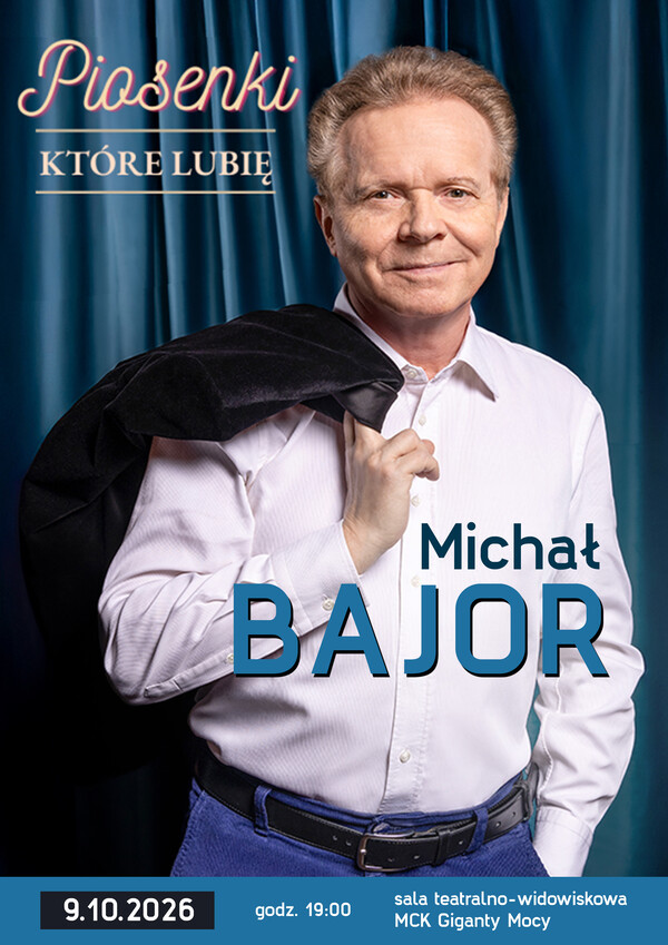 Miejskie Centrum Kultury w Bełchatowie zaprasza na koncert Michała Bajora pt. „Piosenki, które lubię”, który odbędzie się 9 października 2026 r. o godzinie 19:00 w sali teatralno – widowiskowej MCK Giganty Mocy.