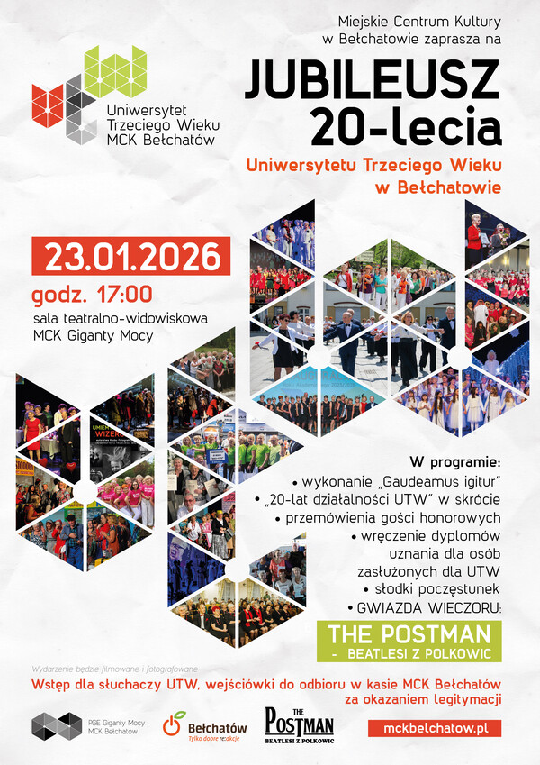 Drodzy Studenci, zbliża się Jubileusz 20 –lecia UTW, który odbędzie się 23.01.2026r.